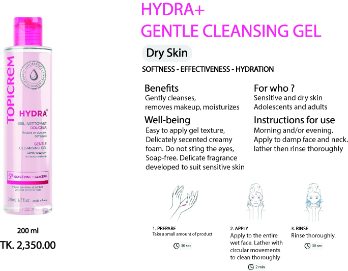 TOPICREM GENTLE CLEANSING GEL, The foaming gel that gently cleanses and removes make-up, without drying out sensitive skin.